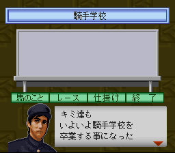 ・ジョッキーとして競走馬に騎乗、G1制覇を目指すゲーム。ゲーム初期は見習い騎手のため小さなレースにしか出ることができないが、レースを勝ち進んで勝率を上げていくことで大きなレースにも出られるようになる。