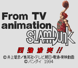 ・大人気の漫画、アニメをもとにしたゲームで、ビジュアルシーンがふんだんに使われている。湘北、翔洋、陵南、海南付属の4校でのプレイが可能だ。リバウンドのポジション争いや、スクリーンプレイも再現されている。