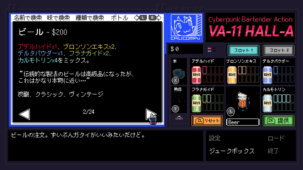 バーテンダーとなって、客にドリンクを出しながら話が展開していくテキストアドベンチャー。