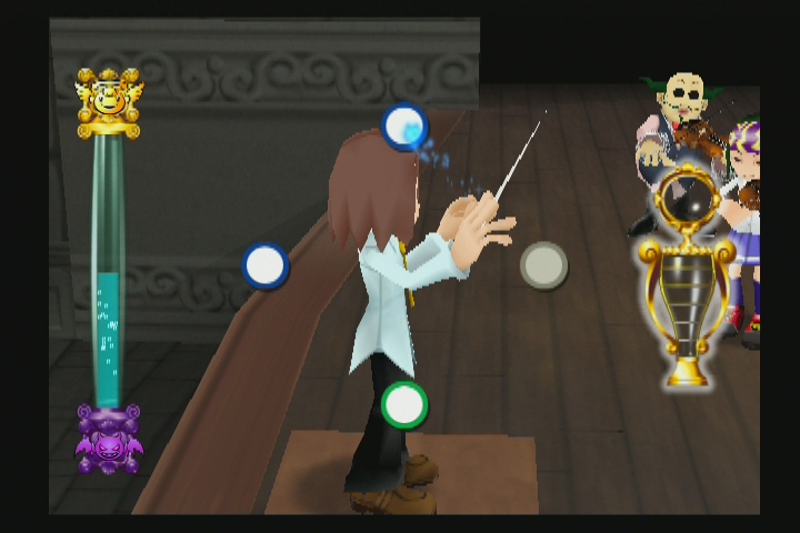 指揮者ですので、楽曲はクラシックです。ほとんどが聞いたことがある曲ですので、曲を聴くのもなかなか楽しいです。また、順調に指揮をしていると、別の楽曲に切り替わったり、ミニゲームで新たな曲を演奏することになったりします。