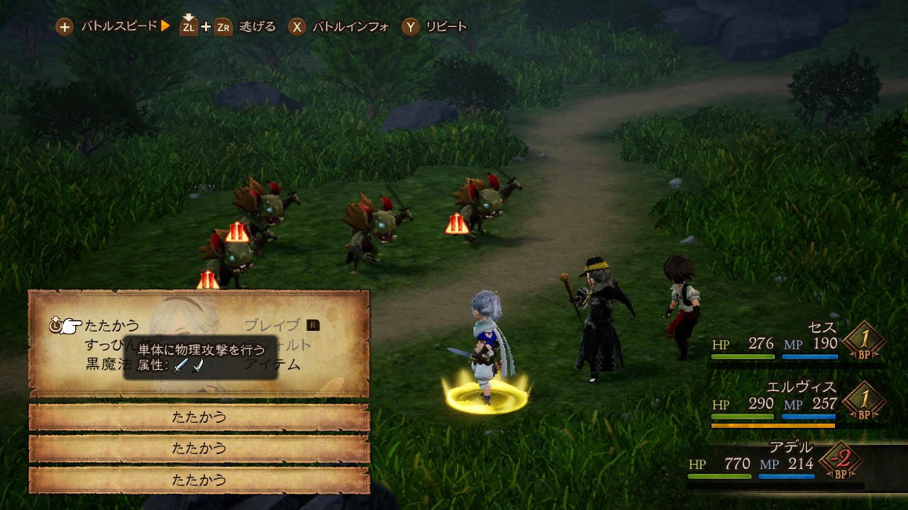 行動の前借り(ブレイブ)や後回し(デフォルト)が出来るバトルが特徴的なRPG。