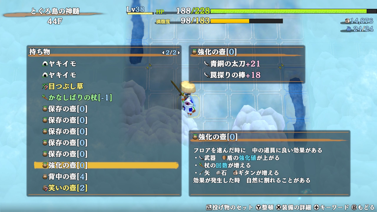 手持ちと預かり屋の壷を直に出し入れ出来たり、識別済みチェックや店売り時の値段チェック、ゲーム内ヘルプなど、かなり遊びやすくなっています。
